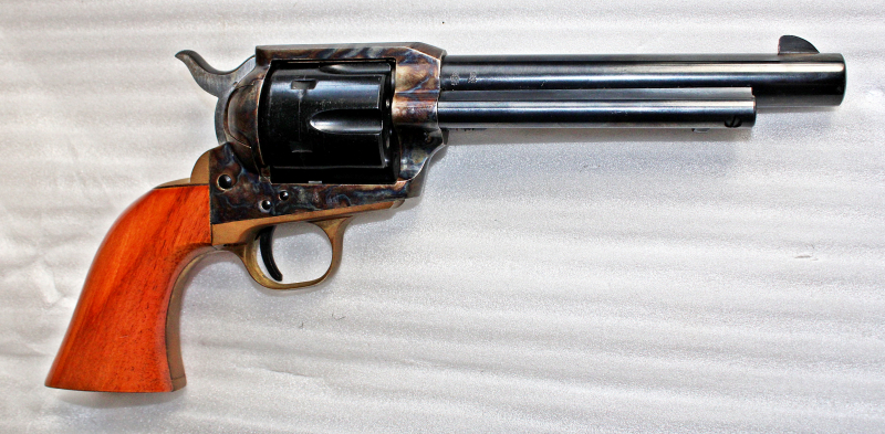 Der wertig gefertigte Revolver zeigt nur minimale Gebrauchsspuren. Mit schönen buntgehärteten Rahmen. Tiefblaue Brünierung. SA Abzug. Seitliche Ladeklappe und Federgehäuse unter dem Lauf zum Ausstoßen der Hülsen. Spiegelblanker, 15cm langer Lauf. Gewicht 1.198Gramm. Mit PTP und F-Zeichen. Daher ohne Bedürfnis erwerbbar.