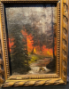 kleines antikes Gemälde Öl auf Holz signiert Emil Weber um 1930 gemalt ca 11 x 16 cm Feuer im Wald im schönen Originalen alten Rahmen