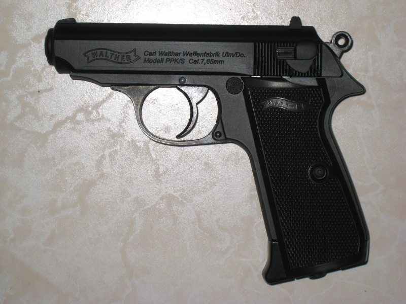 Walther PPK/S Cal. 4,5 mm (.177) BB, Blow Back System, für Stahl-Rundkugeln, neu, nur Probe geschossen, Original-Karton und Beschreibung.