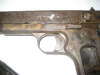 abzugeben im Kundenauftrag für die Fa. Zielscheibe eine defekte nicht vollständige Pistole VIS Radom P35, Kal. 9mmLuger. Die Pistole ist stark angerostet. Sie wurde für die Fotos nur grob gereinigt. Sie ist ausdrücklich nicht mehr schußfähig (zudem fehlt der Hahn, s. Bild 4) und als "Belegstück" zu sehen. Sie wird nur an Händler oder Sammler abgegeben. Falls sie nur die noch vorhandenen "Freien Teile" und das Magazin möchten, so kann, gegen einen Unkostenbeitrag von 20€ die Waffe auch zerlegt und die freien Teile abgegeben werden. Versandkosten sind dann 6,99€.