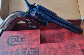 Single Action Army® 45 von Colt. blue Ausführung. Co2-Revolver. Kaliber 4,5 mm BB. Vollmetall. Authentisches Laden mit Metallhülsen.