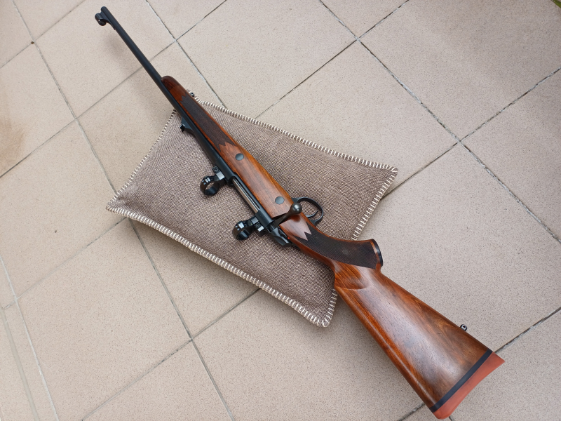 Repetierbüchse Sako 85M im Kaliber .30-06 Springfield. Schöner klassischer Nussbaumschaft mit originaler Schaftkappe, nur geringe Gebrauchsspuren an Schaft und Metallteilen. Lauflänge 57 cm, Schaftlänge 34 cm. Mit Sako Optilock-Montage inkl. der Kunststoffeinlagen und den Ringen; dies ermöglicht die Montage eines Zielfernrohrs ohne Kleben der Ringe. Ringdurchmesser 30 mm, montiert war ein ZF mit 50 mm Objektivdurchmesser. Der Lauf ist innen wie aus der Fabrik, sehr geringe Schussbelastung. Versicherter Versand, nur innerhalb Deutschlands.