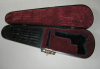 Originaler Geigenkasten, dunkelbraun-hochglanz-lackiert. Innen recht geschmackvolle Einlage für eine Desert Eagle. Den Hülsenboden-Abdrücken nach für Kaliber .44 oder .50. Schlüssel anbei, Schloss funktioniert.