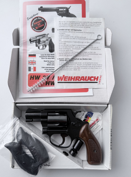 Biete euch hier meinen absolut ungeschossenen HW37 Revolver im Kaliber 9mm RK von Weihrauch Arminius zum Kauf an. Noch einer der wenigen Revolver mit vielen Stahlteilen.