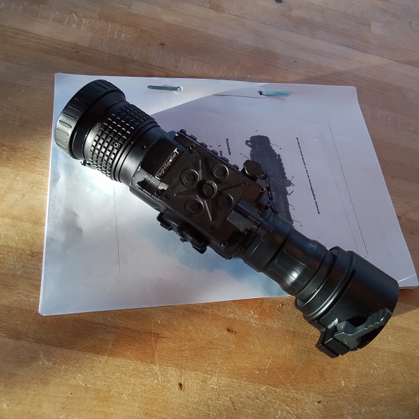 Verkaufe hier aus Nachlass ein Wärmebild Vorsatzgerät Nightspotter T mit ca. 50er Linse, Klemmadapter für ein 50er ZF, z,B. Zeiss 2,5-10x50 ist montiert. Gebrauchsspuren siehe Fotos.