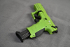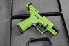 Pistole in limitierter Farbe "Zombster" in grün. Sie wurde nie abgefeuert. Kaliber 9mm P.A.K. Lieferung mit Koffer, Magazin, Reinigungsbürste und Abschussbecher.