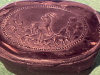 Antike kleine Kugeldose Spanschachtel mit aufgelegten Hotn geschnitzter Steinbock antik