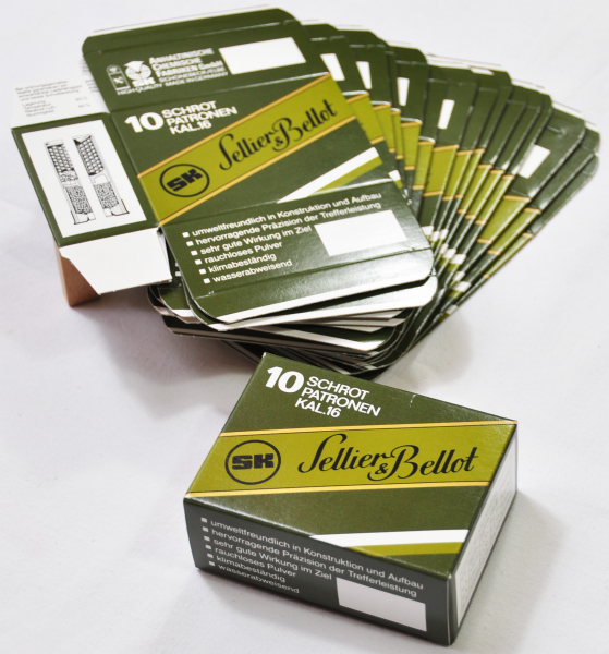 Sie bieten auf 15 Stück leere neuwertige Schachteln für „Sellier & Bellot“ Cal. 16 Schrotpatronen.