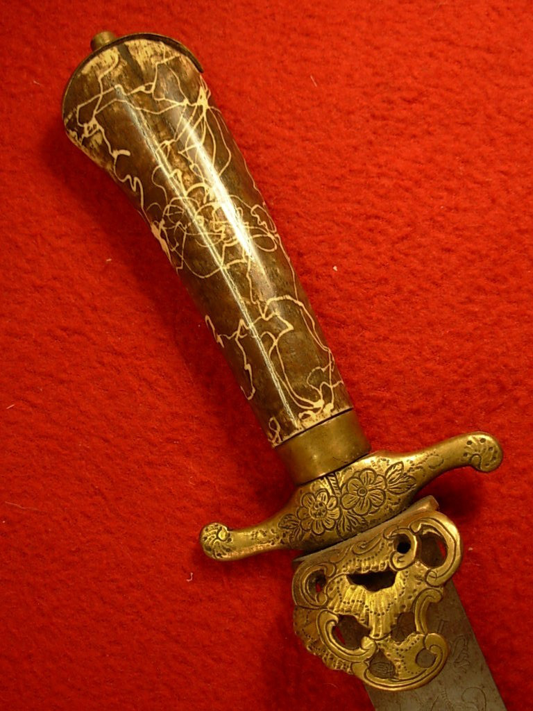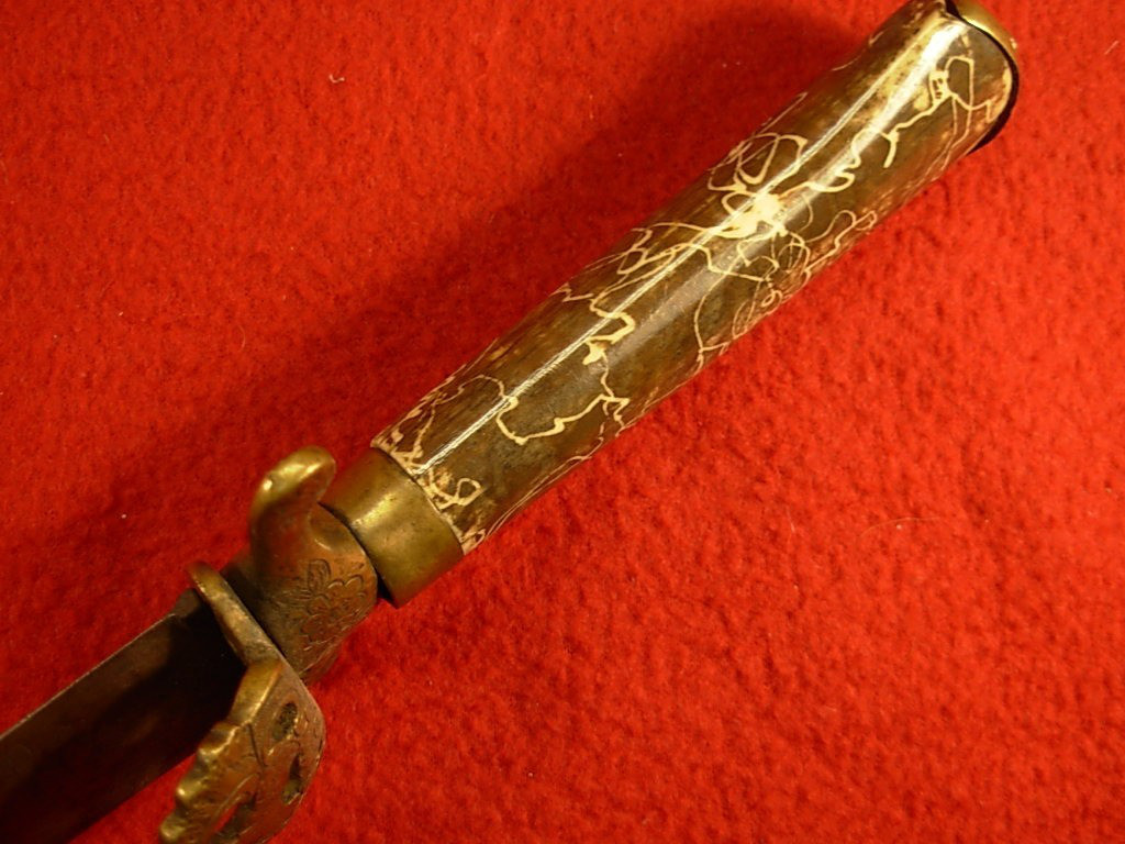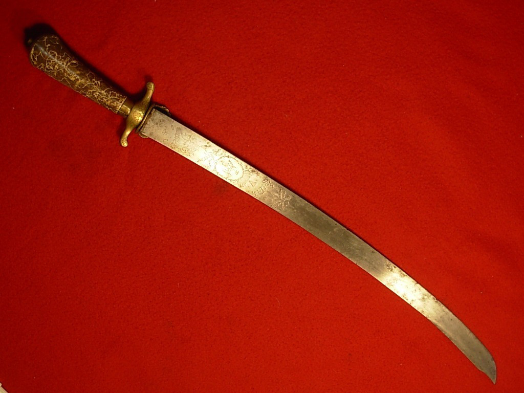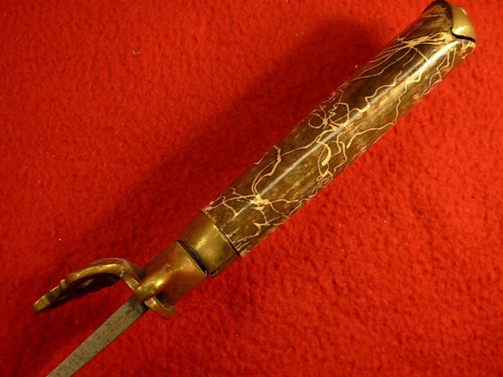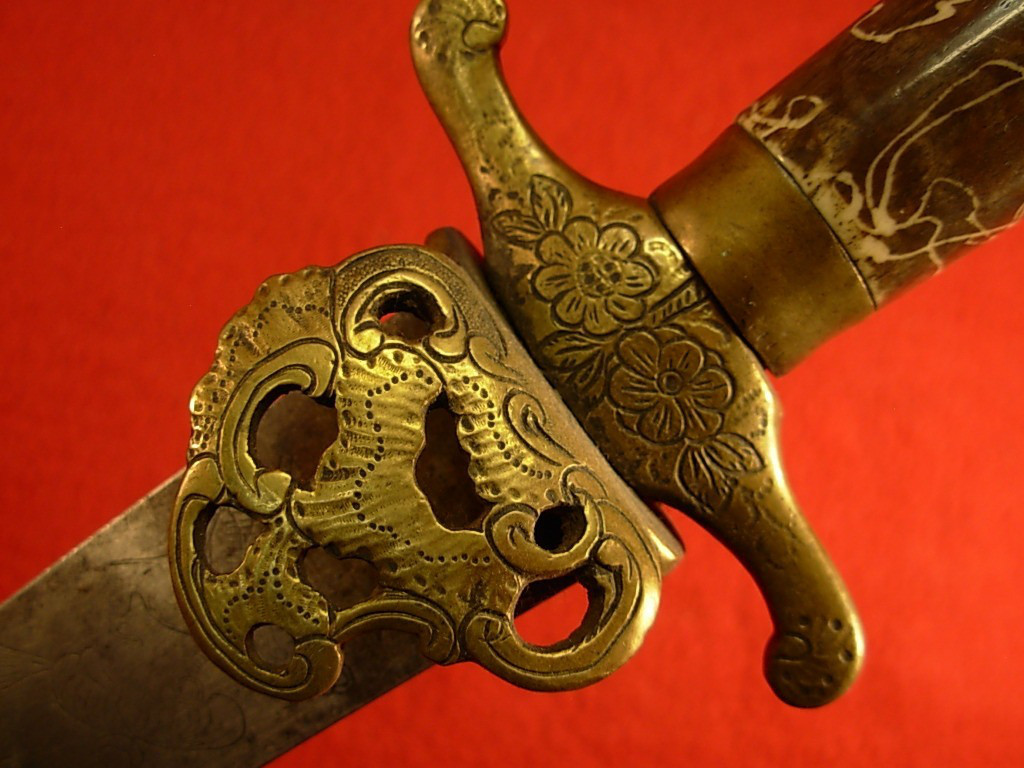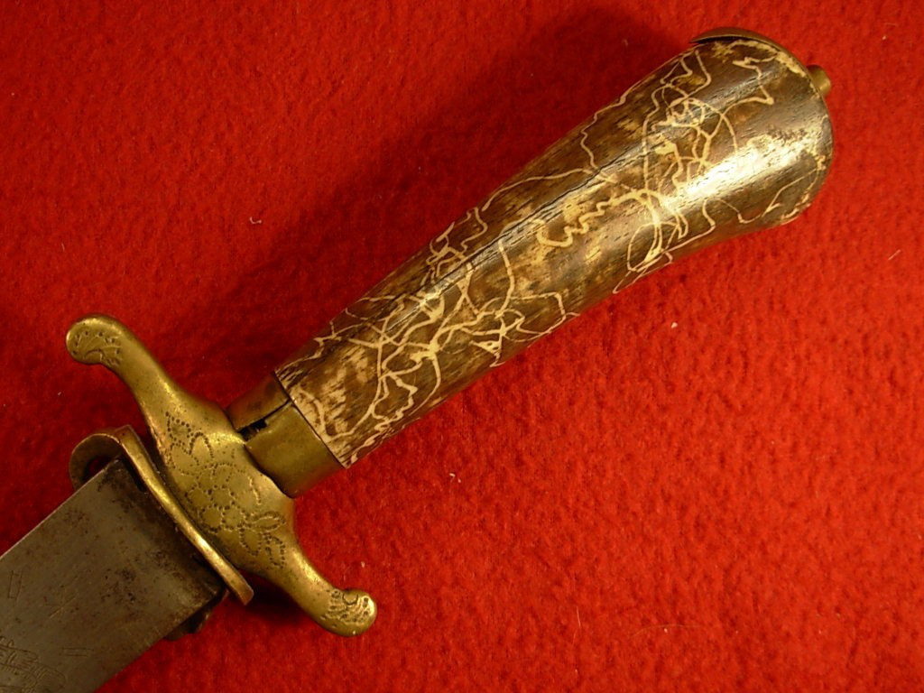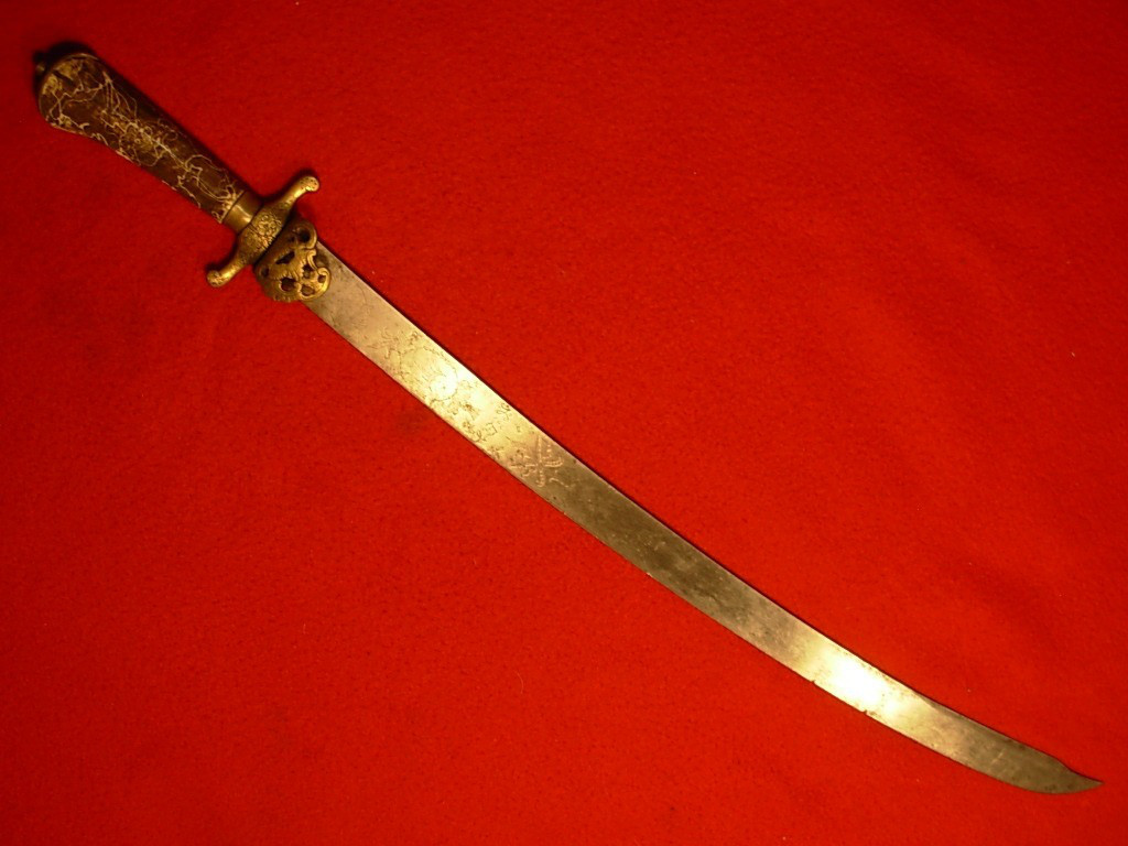 Alte originale Jagdplaute ca. 1750 – Hirschfänger – Jagdmesser – Klinge verziert – braun marmorierter Griff –