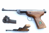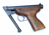 Angeboten wird eine gut erhaltene und voll funktionstüchtige WISCHO-Luftpistole aus den 1950-er Jahren . Der 4,5mm Lauf ist gezogen. Die Feder ist straff und die Schussleistung ist gut. Am Griff befindet sich ein fast nicht sichtbarer Haarriss. Er ist nicht durchgängig und hat auf die Griffstabilität keine negativen Auswirkungen. Mitgeliefert werden 4,5mm Diabolos. Gewicht: 948 g ; Länge: 32cm. (aus der Firma WISCHO wurde später wieder die Firma BSF-bis 1985)