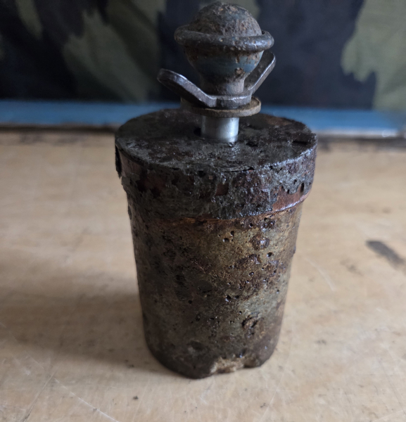 Deutsche Volkshandgranate Orginal mit Zünder nur innen ist aus Holz.