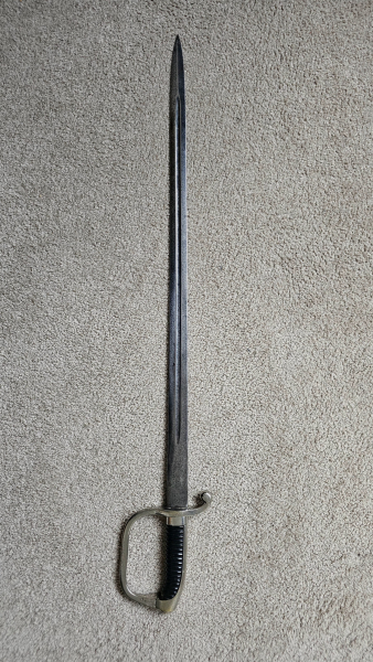 Bayrisches Polizeiseitengewehr, bis 1918. Klingenlänge ca. 57 cm, Gesamtlänge ca. 71 cm, Klingenbreite ca. 2,7cm. Zustand wie auf den Fotos ersichtlich. Privatauktion, daher keine Garantie, Umtausch, Nachverhandlung, Rücknahme, Gewährleistung nach EU-Recht.