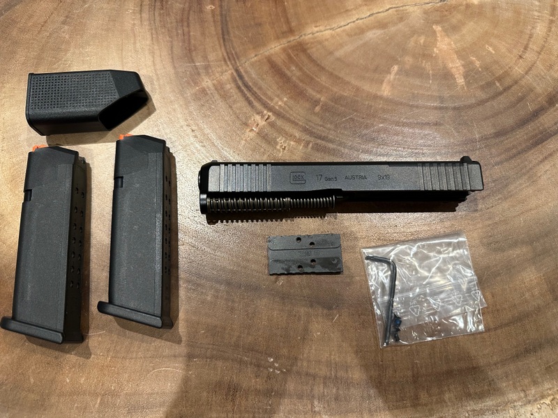 Zum Verkauf steht ein Wechselsystem mit MOS für eine Glock 17 Gen 5 im Kaliber 9mm Luger für 899 EUR