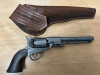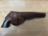 Holsterausführung als Klappenholster in Mittelbraun ideal für Open Top Vorderladerrevolver bis Lauflänge 7,5 " Waffe sitzt sauber und fest darin für Gürtelbreite bis 7 cm, sehr guter Erhaltungszustand.Holster sieht mit den Punzierungen optisch gut und authentisch aus. Weiches trotzdem stabiles Leder alle Nähte top Maker unbekannt. Inklusive des dargestellten Deko Revolvers.