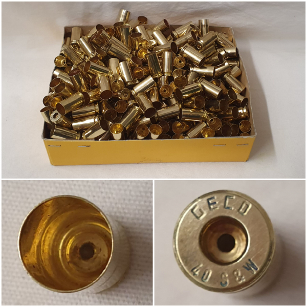 Ich verkaufe 594 .40 S&W Hülsen. 408 der Marke GECO. Die Hülsen machen einen neuwertigen Eindruck, waren aber schon einmal geladen. Dann kommt noch ein Mix aus 186 Hülsen von verschiedenen Herstellern. S&B / PPU / PMC / CBC / G.F.L. Die Hülsen sind gereinigt.