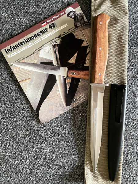 | Aus meiner Sammlung eine Neufertigung des seltenen Infanteriemessers 42 (Grabendolch WK 2) /Deutschland, des Seitengewehr 42 /Deutschland, des Puukko /Finnland, des Marine-Bordmesser /Japan, des Kabelklappmesser /Deutschland. Keine billige Fertigung und hochwertig verarbeitet. Zum Lieferumfang gehören alle 5 Messer sowie die dazughörigen Beschreibungen.