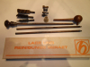Metall, wahrscheinlich Messing, 3-teiliger Putzstock mit Gewinde, Wischlänge ca. 90 cm, 75 mm, 3 übliche Bürsten und sonstiges Zubehör gemäß Abbildung. In Kartonverpackung. Benutzt.