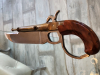 Elgin-Cutless Derringer 1837 im Kaliber .45mit Entermesser mit einer Gesamtlänge von 31cm. Die Bowie Klinge hat eine Länge von 16cm. USA Fertigung von CMC aus den 70ern. Beschusszeichen sind vorhanden. Seltene Replika einer Enterwaffe. Ladestock sitzt stramm.