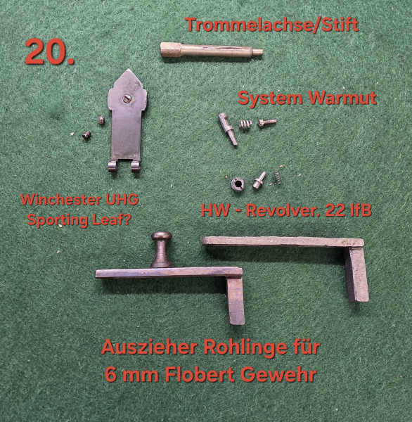 20.) Konvolut Pistole Winchester Warmut HW Auszieher 6mm Flobert .22 Revolver Trommel Achse Stift