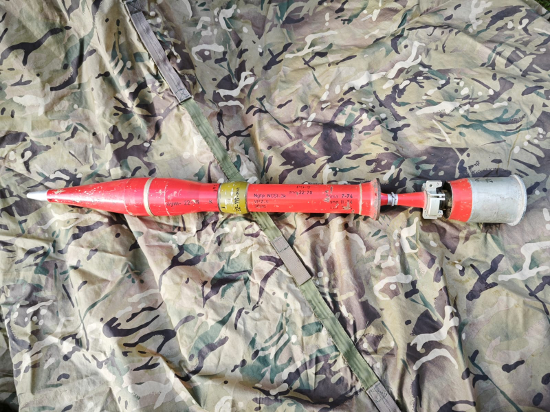 Die PG-9 ist eine panzerbrechende Rakete, die unter anderem von Schützenpanzern (BVP / BMP) abgefeuert wurde. Dieses Exemplar wurde überwiegend zu Ausbildungszwecken verwendet, was den deutlich sichtbaren Zustand erklärt. Sie ist für Sammler von militärischem Gerät interessant.