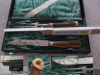 Angeboten wird der abgebildete, sehr stark gebrauchte Kasten mit Messer (etwas Rost) und Fleischgabel (besser).