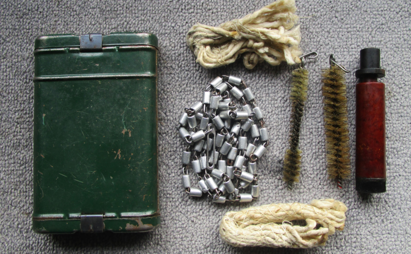 Biete hier dieses originale Reinigungsgerät RG57 an, 50er Jahre Fertigung, identisch mit dem Reinigungsgerät RG34 der Wehrmacht. So nach dem Krieg von den verschiedenen Formationen eingesetzt. Komplett mit beiden Reinigungsbürsten, Öler, Kette und zwei Reinigungs-Dochten. Keine Stempel oder Markierungen erkennbar. Sehr guter Originalzustand. Fragen hierzu gerne per email. Allen Bietern viel Erfolg.