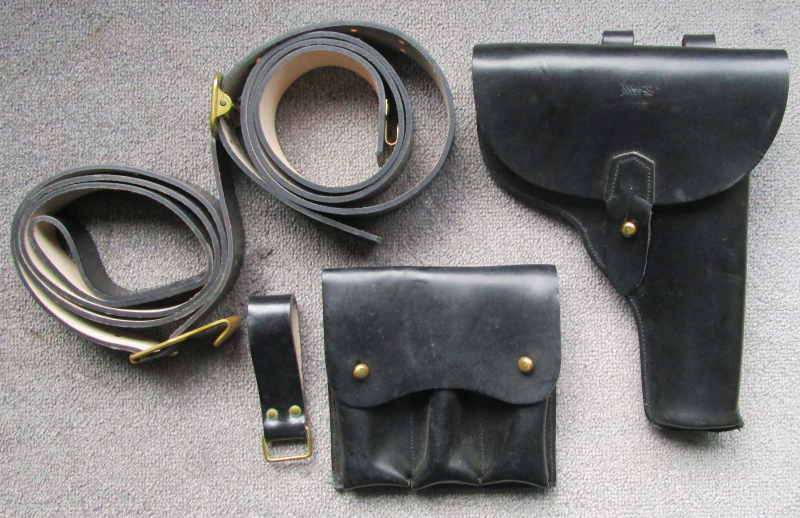 Biete hier dieses schöne Colt Kongsberg M1914 Set an, bestehend aus dem originalen Holster / Pistolentasche, dem passenden Lederkoppel (ca. 128cm Länge) mit Koppelschlaufe und dem dazu gehörigem Schulterriemen (ca. 125cm Länge) sowie der leeren Magazintasche, passend für 3 Ersatzmagazine, sehr guter Erhaltungszustand, das Leder ist weich und auch die Nähte und Nieten sind fest und in Ordnung, alle Teile wohl Nachkriegsfertigung, Fragen hierzu gerne per email, allen Bietern viel Erfolg