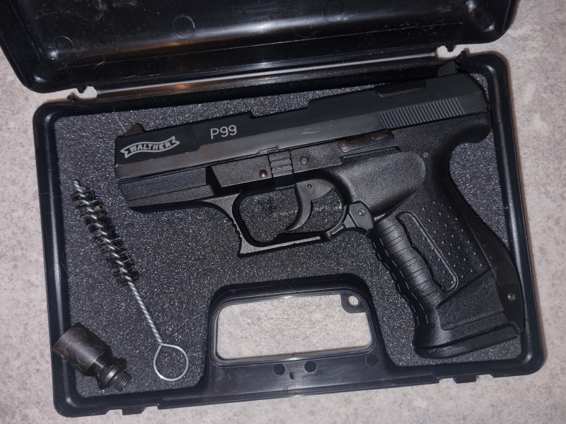 Schreckschusspistole Walther P99 Kal. 9mm PAK, BJ: 2000, PTB 762, mit Koffer Sammlungsauflösung
