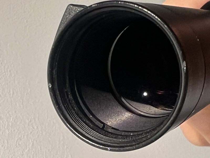 Das Glas befindet sich technisch in sehr gutem, voll funktionsfähigem Zustand. Außen sind Gebrauchsspuren am Gehäuse vorhanden (siehe Fotos), die Linsen sind jedoch absolut klar und frei von Kratzern. Mechanik und Leuchtpunkt funktionieren einwandfrei.