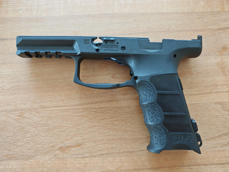 Verkaufe gebrauchtes Griffstück Heckler & Koch SFP9, leer, ohne Inhalt und Anbauteile. Griffstück hat 50 Schuss runter. Verkauf nur an Händler / Büchsenmacher. Keine Garantie/ Gewährleistung, Rückgabe, Wandlung, Minderung.