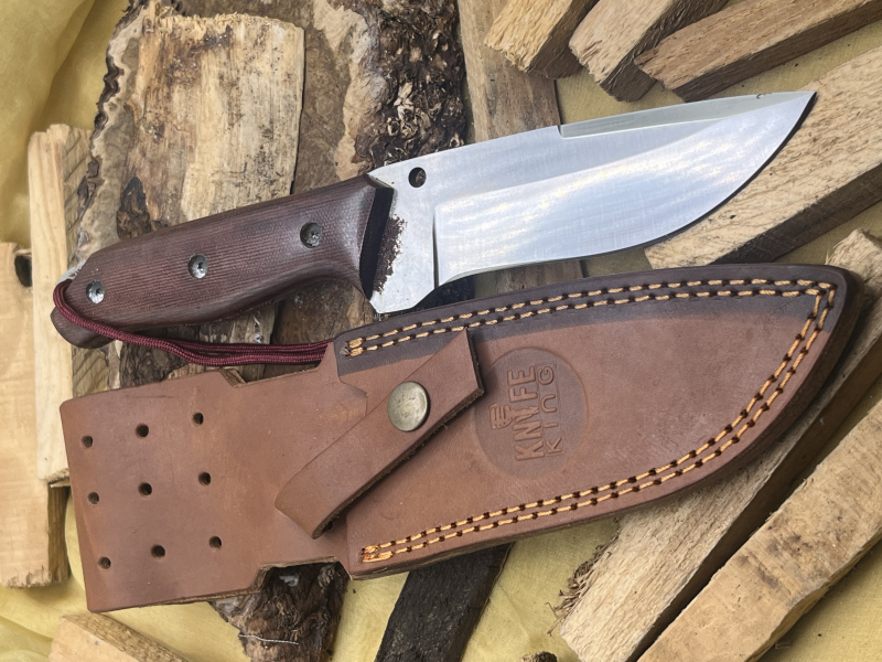 - Typ: Handgefertigtes D2 Jagdmesser. Micarta-Griff. Full Tang D2 Klinge. Inklusive Lederscheide.