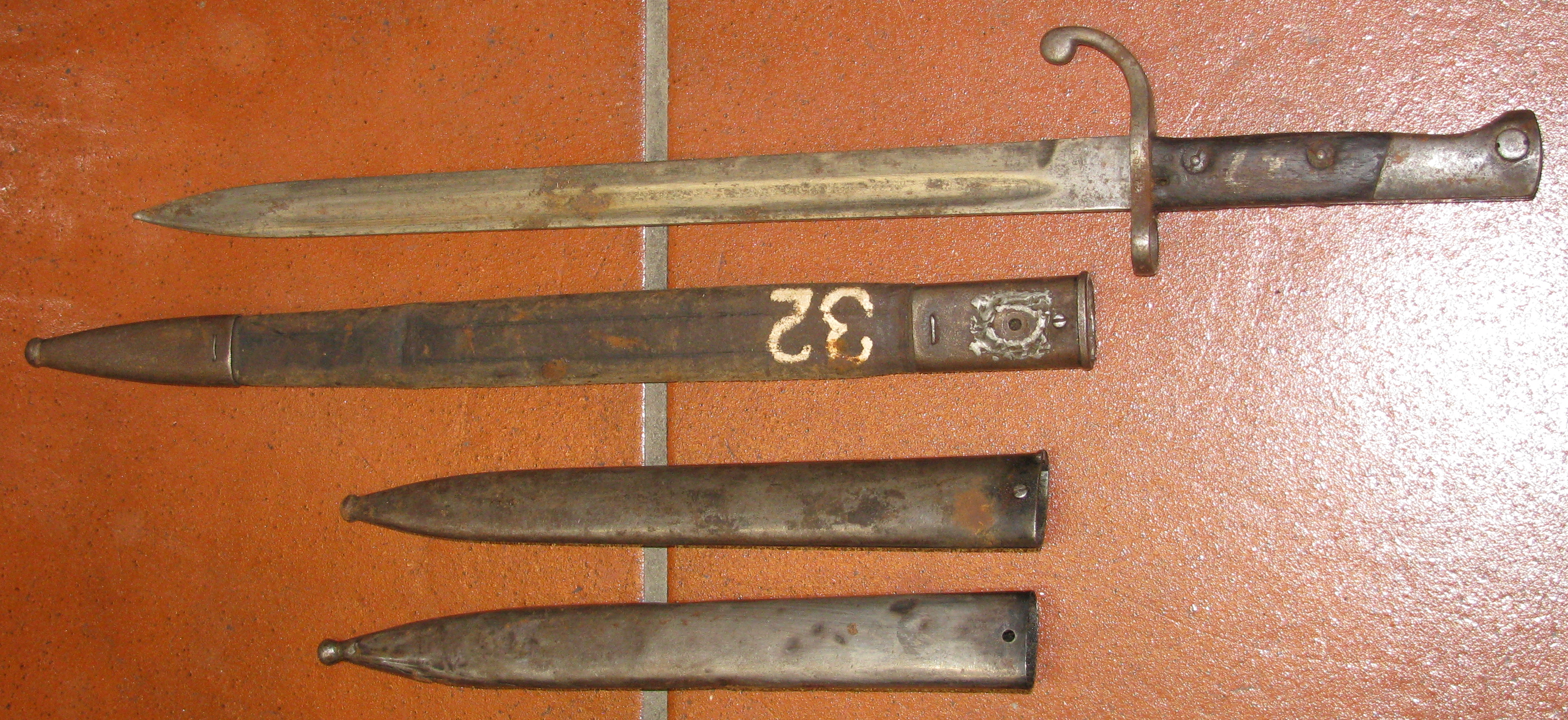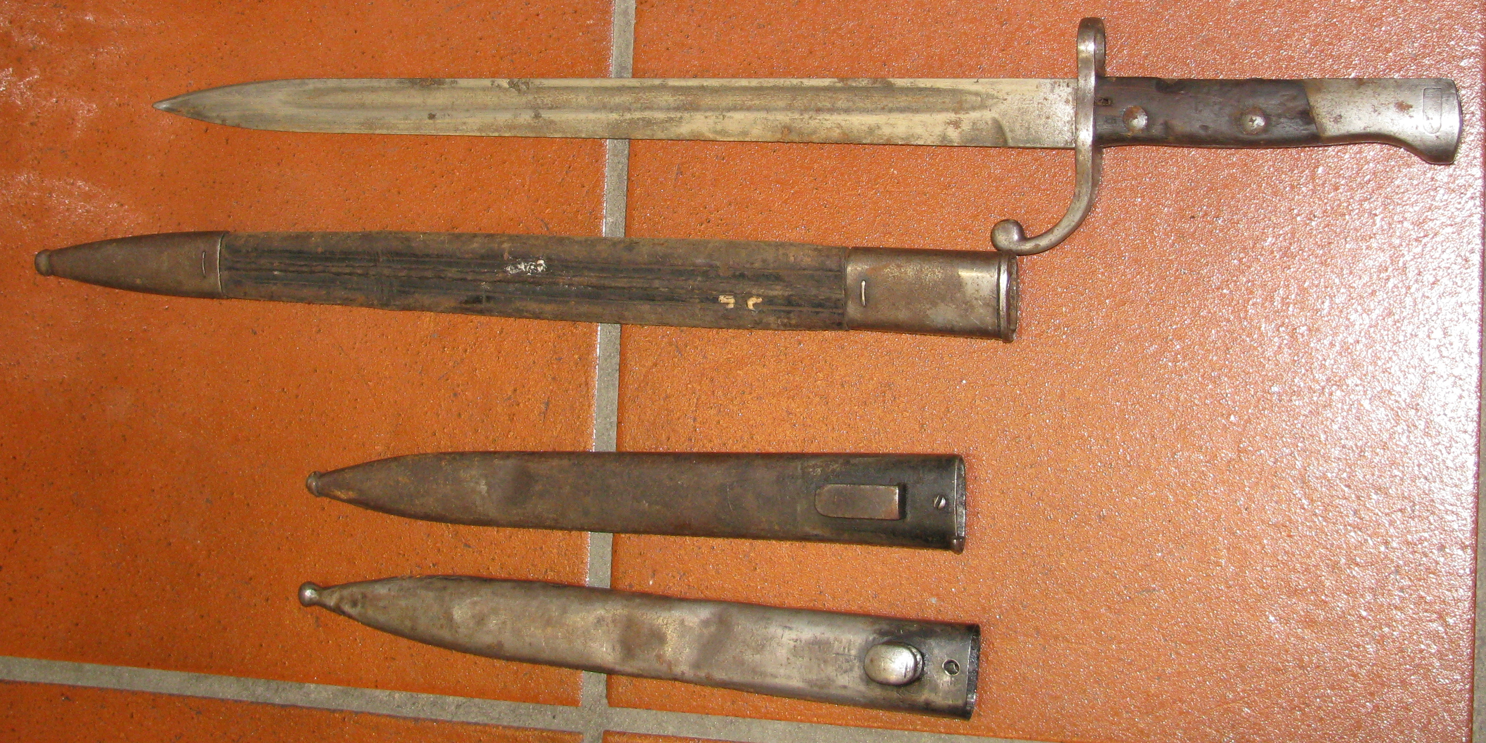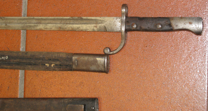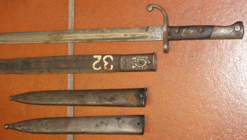 Bajonett mit Lederscheide und dazu zwei Stahlscheiden