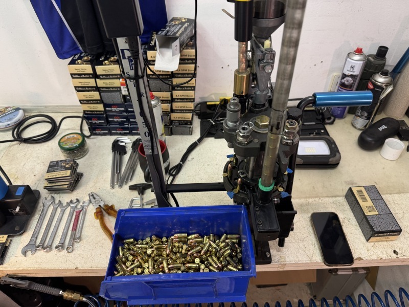 Eine der fortschrittlichsten und leistungsfähigsten Progressivpressen aus dem Hause Dillon – entwickelt für Schützen und Wiederlader, die regelmäßig große Mengen Munition auf höchstem Niveau herstellen möchten. Technische Details und Eigenschaften: Fortschrittliche Progressivpresse mit automatischer Indexierung Stabiler Stahlrahmen – gebaut für höchste Belastungen und lange Lebensdauer Aufnahme für Standard-Matrizen (7/8"-14 Gewinde) Integrierter Zündhütchen-Setzer mit automatischer Zuführung Hülsenbearbeitung mit bis zu 8 Stationen möglich Für verschiedene Kaliber umrüstbar (Kaliberwechsel-Kits separat erhältlich) Schnell und zuverlässig auch bei hohen Produktionsmengen Zustand: Gepflegt, regelmäßig gewartet, läuft technisch einwandfrei. Optisch sind leichte Gebrauchsspuren vorhanden, die Funktion wird dadurch jedoch nicht beeinträchtigt. Die Super 1050 ist eine Top-Presse für alle, die nicht nur gelegentlich, sondern professionell wiederladen möchten. Sie bietet Präzision, Geschwindigkeit und Zuverlässigkeit – ein Maßstab in ihrer Klasse.