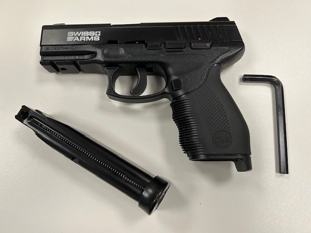 Ich biete hier eine Swiss Arms SA24, Co2 Pistole in sehr gutem, kaum benutzten Zustand, Metallschlitten, kein Blowback. Gummiertes Griffstück. Manuelle Sicherung. Integrierte Picatinnyschiene unter dem Lauf. Single Action Abzug. 3-Punkt Visierung. Spin Up System für notwendige Präzision. Antrieb über eine Standard 12-g Co2-Kapsel. Das Magazin hat eine Kapazität von 21 Schuss Stahl BB's.
