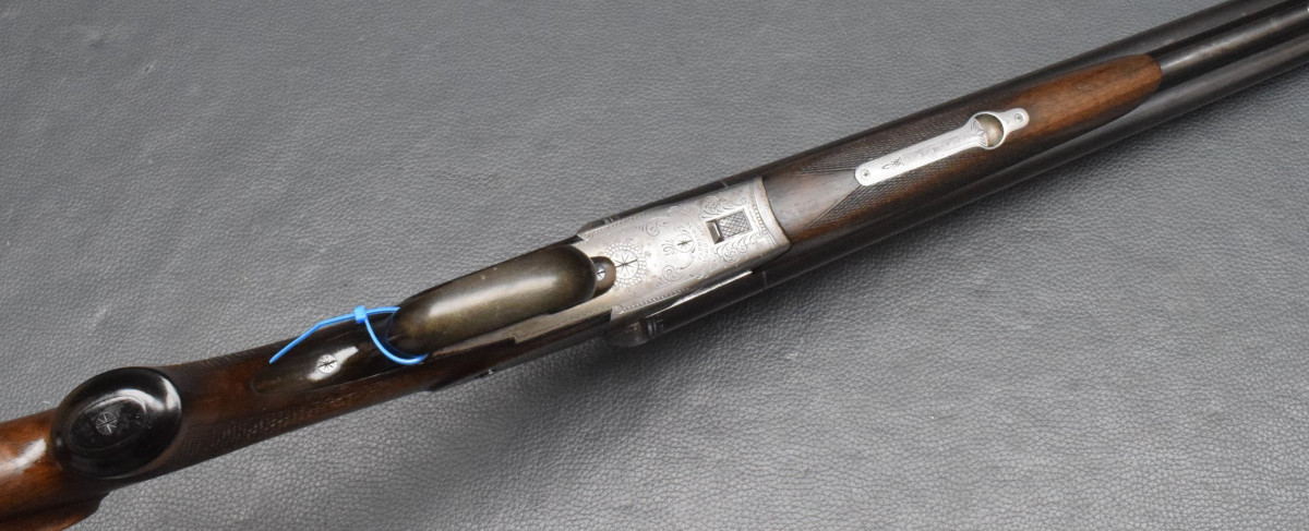 Läufe sehr gut, Brünierung 96%, Schaft gut