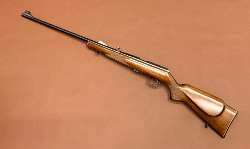 Zum Verkauf steht eine Anschütz Repetierbüchse Mod. 1416 im Kaliber .22lr. Die Büchse ist eine zuverlässige Kleinkaliber-Repetierwaffe mit klassischem Holzschaft und sauberer Mechanik. Ausgestattet mit Kimme & Korn (Kimme klappbar) ermöglicht die Waffe schnelle Zielerfassung ohne Optik; ein Magazin ist im Lieferumfang enthalten.