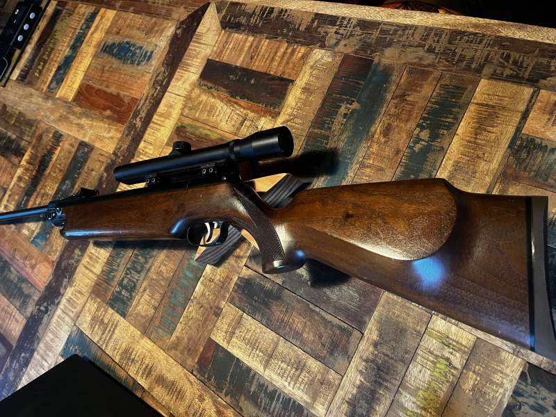 Zum Verkauf steht ein Weihrauch Luftgewehr Modell HW 35 ( Weitschuss ). Montiert ist ein einfaches ZF Nikko 4x20. Das Luftgewehr verfügt über eine automatische Sicherung. Am Schaft befinden sich 5 kleine Druckstellen ( Siehe Bild). Die Feder ist stramm und der Druck hält.