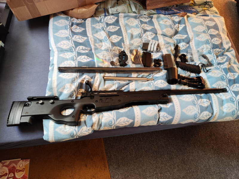 Ein Zweibein, mehrere Magazine und ein zweiter Lauf mit Laufmantel. Der Verkäufer versicherte mir, dass das Gewehr voll in Ordnung ist.