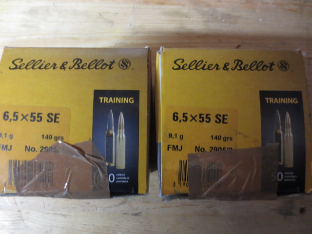 Hier werden 100 einmal abgeschossen Hülsen in 6,5x55 von S&B in original Boxen angeboten.