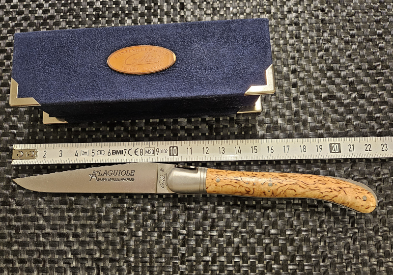 Verkaufe hier ein original Fontenille Pataud Laguiole Messer. Die Besonderheit an diesem Laguiole ist neben der wirklich erstklassigen Verarbeitung das die Klinge beim Öffnen verriegelt, wodurch ein sicheres Arbeiten gewährleistet wird. Zum schließen der Klinge genügt ein leichter Druck auf der Rückseite vom Griff und die Klinge kann leicht eingeklappt werden. Das Messer ist 100% neu