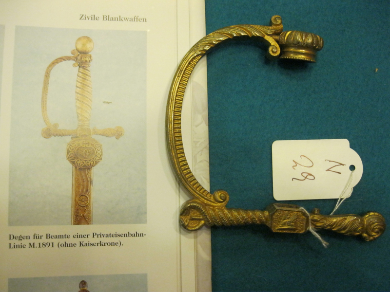Österreichischer Eisenbahn Beamten Degen M 1891 Parierbügel für Degen von Beamten einer privat Eisenbahnlinie M 1891.