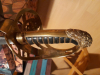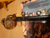 Holz-Griffstück mit schwarzem Leder überzogen, gut erhaltene Original Wicklung.