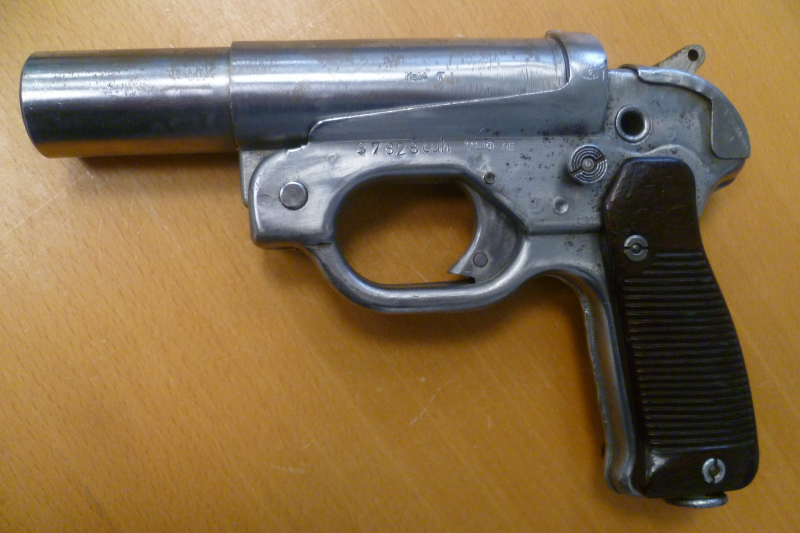 Signalpistole mit normalen Gebrauchsspuren in altersgemäßem, gutem Gesamtzustand.