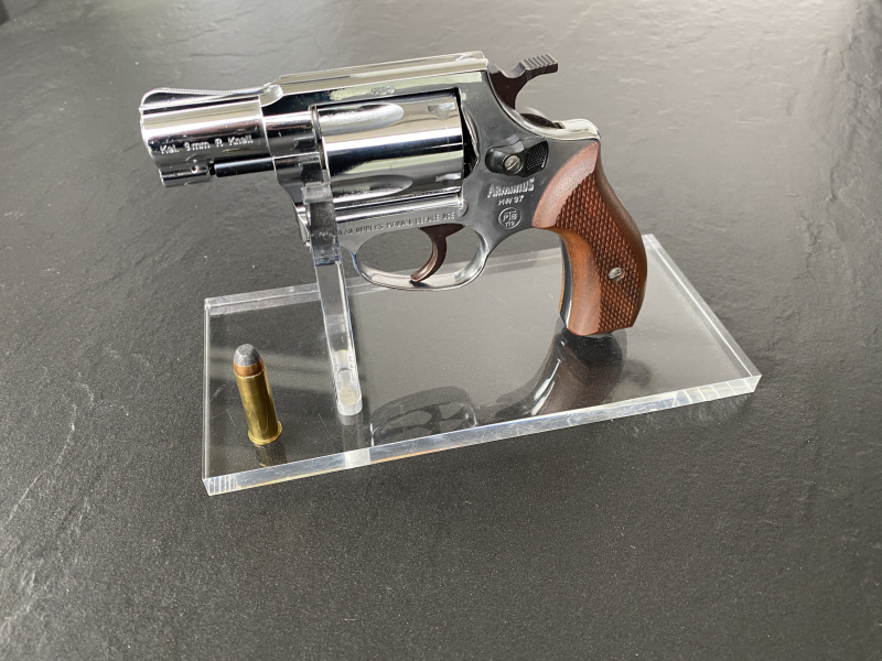 Hallo liebe eGunner und Freunde seltener und schöner Revolver, verkaufe hier einen wunderschönen Revolver von Weihrauch aus der Arminius Serie hier das Model HW37 verchromt mit der PTB Nr.: 779. Es wurde auch ein sehr schöner schlanker Nussbaumgriff montiert (die Original-Griffschalen liegen bei). Der Revolver ist ungeschossen und unbespielt, stand nur in der Vitrine. Ach ja er stand auf einem originalen Plexiglas-Ständer von S&W und der gehört auch mit dazu mit dem Nummerngleichen Originalkarton. Griffschrauben und die Trommelschiebe-Schraube sind aus Edelstahl. Ein Hogue Griff für S&W Revolver J-Rahmen R.B. liegt ebenfalls bei. Privatverkauf daher keine Garantie, Gewährleistung, Rücknahme. Die Bilder sind Bestandteil der Auktion.