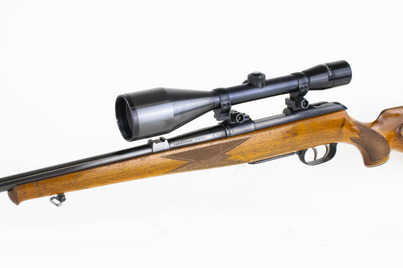 Inklusive Zielfernrohr Kahles Wien Helia Super 8x56. Absehen: siehe Fotos Schaft ohne Risse. Stellenweise Kratzer und Druckstellen. Kleine abgeplatzte Stelle im Hinterschaft (siehe Fotos).