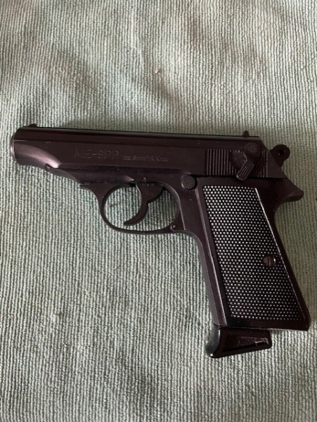 Alte 9 mm P.A.K / PP Nachbau Emser Sportwaffen mit schwarzen Kunststoff-Griffschalen! ohne Schwächungen wie es damals üblich war, viele sagen , der beste Nachbau der Walther PP!