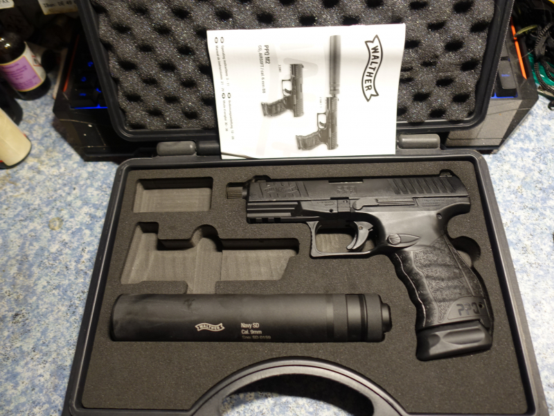 Walther PPQ M2 Navy kit, 6mm BB, 1,3J, Blowback, 12g CO2, ungeschossen, Pistole, magazin, Schaldämpferatr.