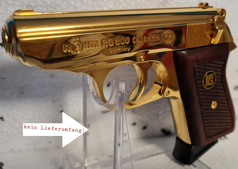 Biete eine RG800 mit Holzgriffschalen in der Goldedition an. Die Waffe wurde von mir nicht geschossen,evtl. Spuren entstammen vom Beschuß. Die Jahresangabe ist KE = 1994. Lieferumfang = Bürste, Abschussbecher ,Kartonage ( braun) und grünes Tuch. Bedienungsanleitung liegt nicht vor. Es handelt sich um eine Sammelwaffe, meiner Ansicht nach ein "Neuwertiger Zustand" und sie wurde nur mit Stoffhandschuhen berührt ! Waffe ist damals nur in geringen Stückzahlen und nur für Händler hergestellt und ausgegeben worden. Bitte vor Abgabe eines Gebot evtl.Fragen stellen, danke.
