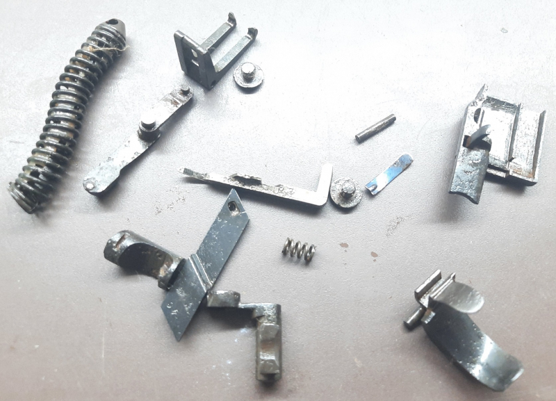 Ein Teilesatz für P 08 Mauser Erfurt Griffstückteile, gebraucht und vollfunktionstüchtig, schauen Sie sich die Bilder an, sie sind das wesentliche Bestandteil der Beschreibung. Artikel befindet sich im guten gebrauchten Zustand. Im Teilesatz enthalten: Deckplatte kpl. orig., Schließfeder, Zugstange, Magazinhalter orig., Abzug orig., Verschlußfanggelenk orig., Riegel orig., Sperrhebel orig., Winkelschieber, Griffschalenschraube, Zugstangenwinkelheber orig. und die anderen, siehe Foto Baujahr 1917, Teilesatz ist nummerngleich. Es handelt sich hier um freie Ersatzteile, die keiner Erwerbsberechtigung bedürfen. Privatverkauf, keine Rückgabe oder Gewährleistung.