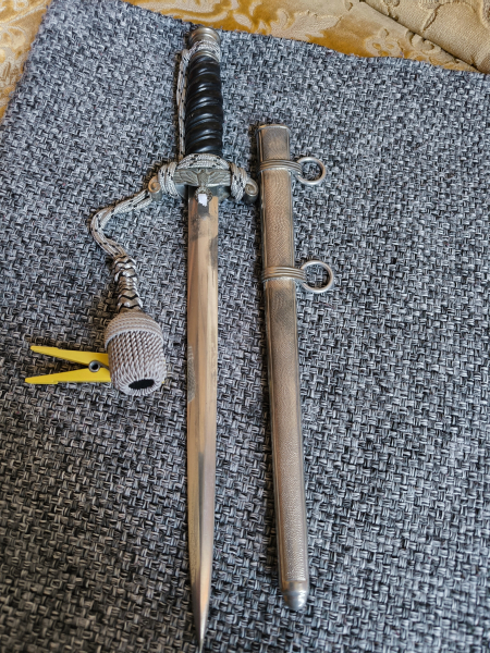 Fundzustand, DR- Dolch für höhere Beamte der Schifffahrt von Carl Eickhorn mit Portepee silberfarben mit dunkelblauer Füllung Schnur dunkelblau durchwirkt, Griff Kunststoff dunkel -purpur, fast schwarz, Beschläge versilbert, Gleichbleibend Patina ,im besten Gewissen beschrieben, Fragen bitte vorher stellen, Bilder schicke ich sehr gerne noch, Bilder sind Bestandteil der Auktion,